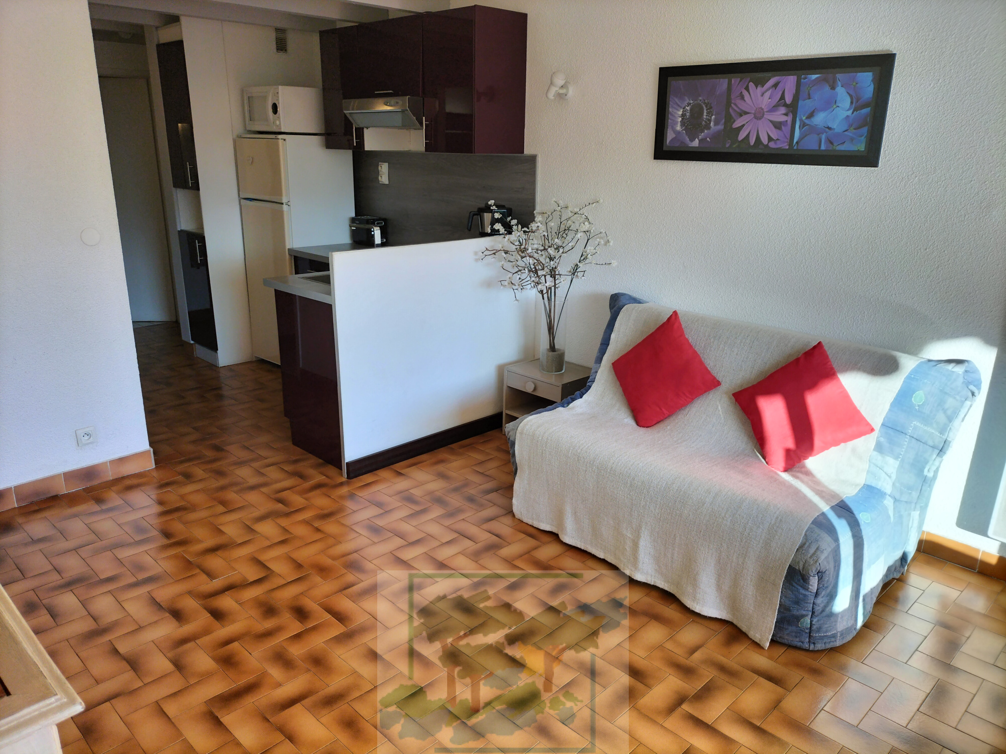 Argeles plage dans une résidence avec piscine, au 3 ème étage avec ascenseur, appartement 2 pièces d'environ 30 m², plus terrasse de 6,4 m² et parking. L'appartement se compose: d'un séjour /salon avec cuisine ouverte, d'une chambre, d'une salle d'eau, d'un WC séparé et d'une terrasse avec une jolie vue dégagée sur piscine montagne et verdure.