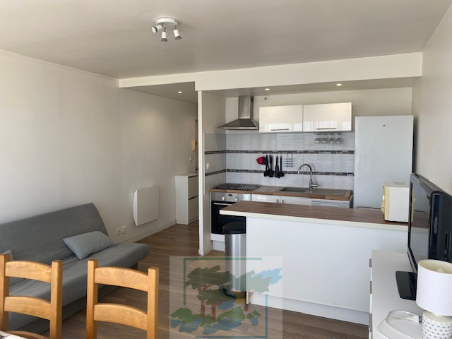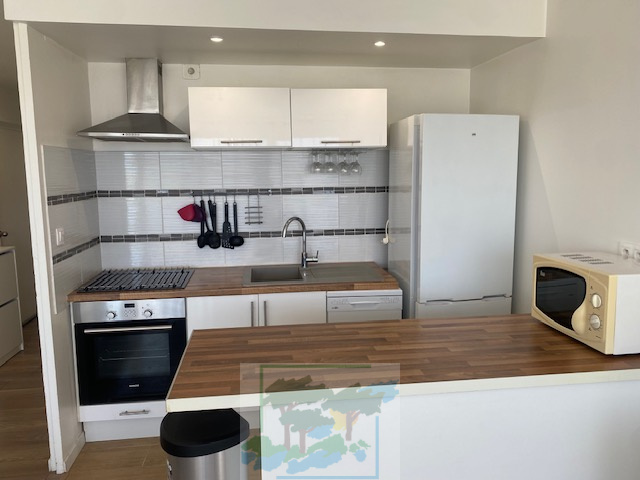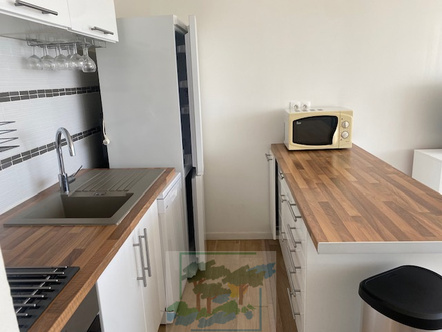 Entrée (rangement), séjour/cuisine américaine aménagée 20m² (la loggia a été supprimée pour agrandir le séjour), 2 chambres avec plarcards toute hauteur, SDE, WC séparés